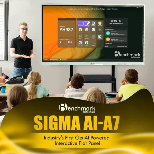 Benchmark Sigma AI A7 ek premium Android 14 interactive flat panel hai jise specially smart classrooms, offices, aur studios ke liye design kiya gaya hai.