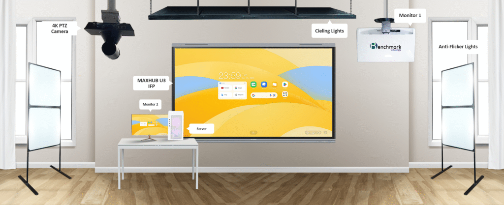 | Product Installed | Maxhub U3 75” Panel, Maxhub PTZ Camera, Benchmark i5 Server, 24” Monitor, Benchmark Mic |